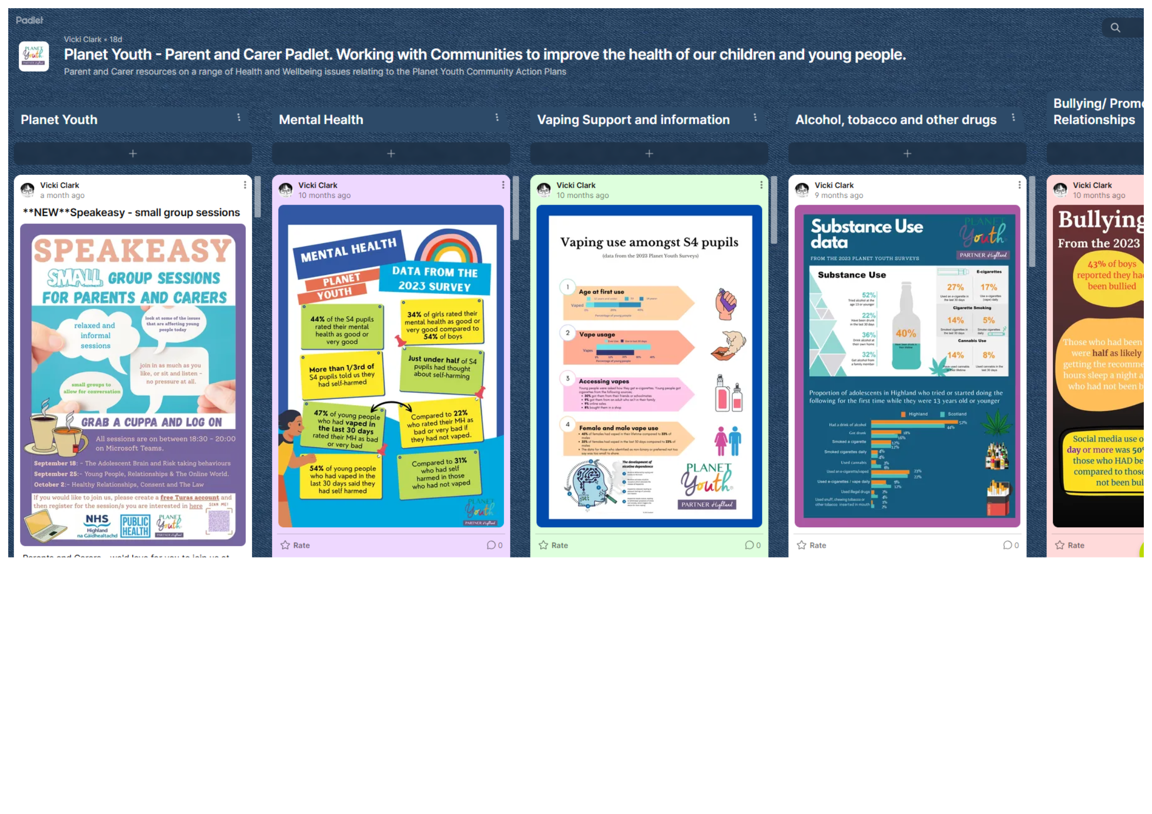 Have you had a look at the Parent and Carer Padlet yet? https://padlet.com/PlanetYouthHighland/planet-youth-parent-and-carer-padlet-working-with-communitie-m6ddc873byvsdsod